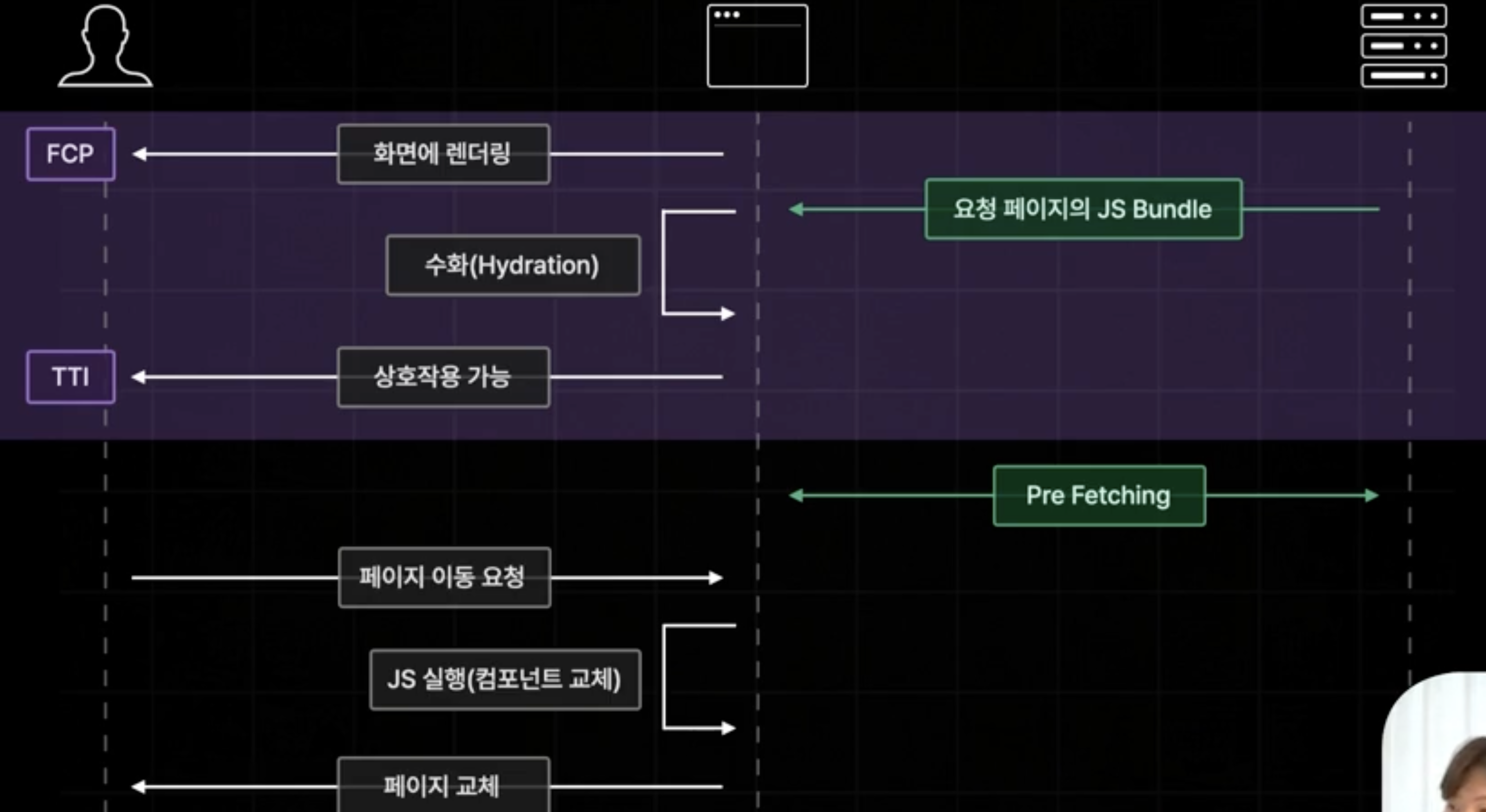요청이 들어올때마다 서버에서 사전 렌더링을 진행한다.