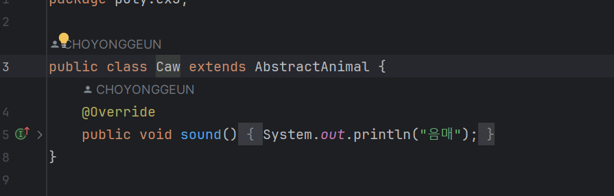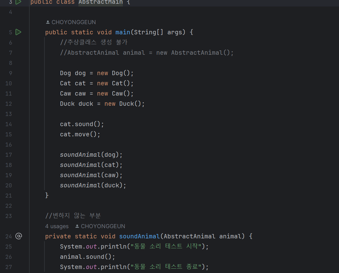 위와 같이 추상 메서드는 반드시 오버라이딩이 되야 한다.