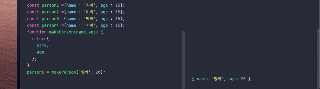 이런식으로 반복적인 object를 생성하기 위해서는 함수를 사용하는 것이 좋다.