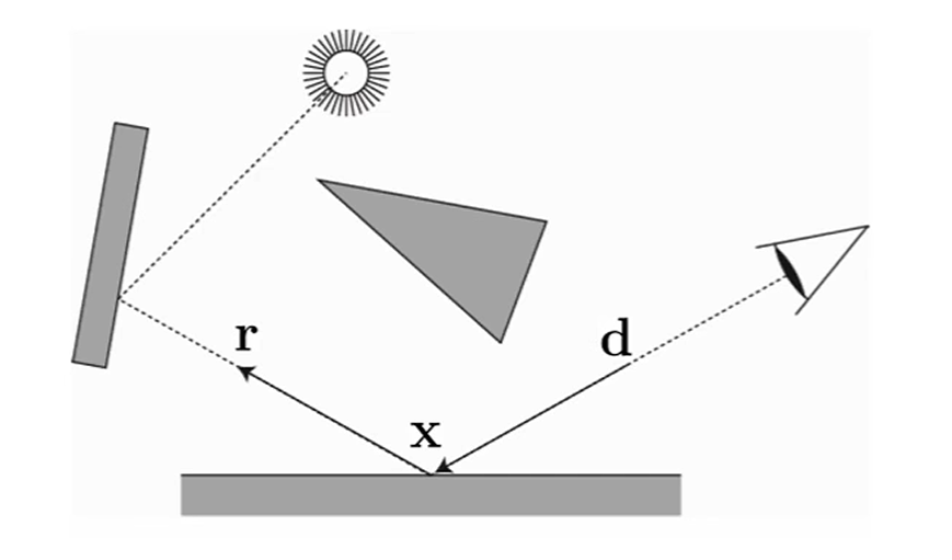 이렇게, 점형 light source에서 나온 ray들이 반사되고, 흡수되고, 어쩌고 해서 돌아오는 빛을 카메라에 담는 것을 Forward Ray Tracing이라고 하구요.