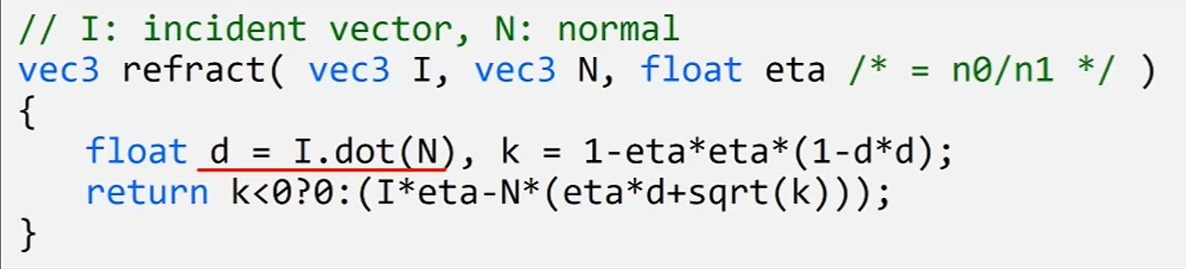 Simple Ray Tracing에선 전반사만 구현하는데,