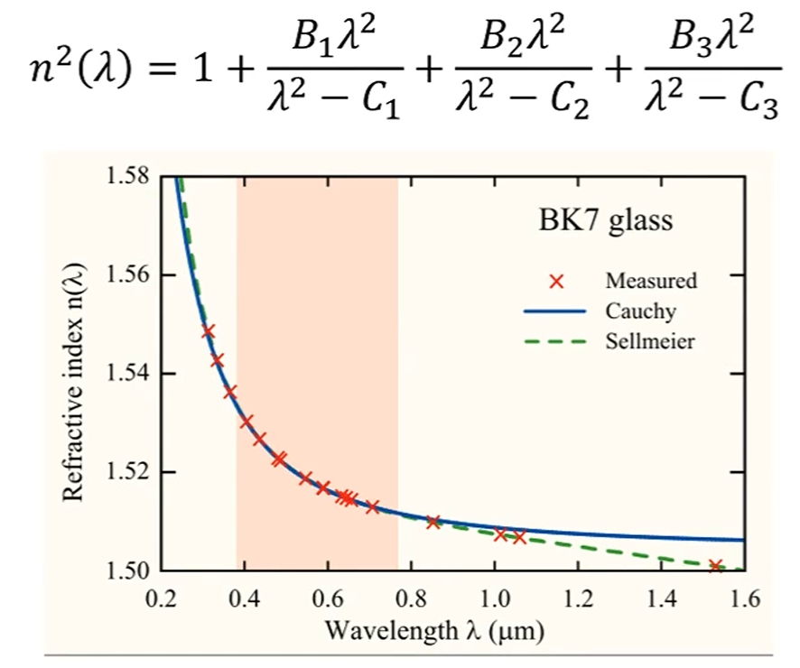 다음 공식을 이용하면 전체 wavelength에 대해 굴절율을 다르게 적용할 수 있습니다.