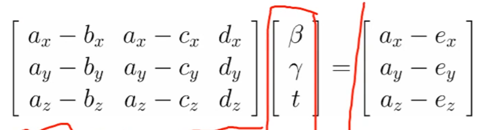 다음과 같은 상황일 때, 이미지 평면에 투영되는 위치 로의 ray 식은