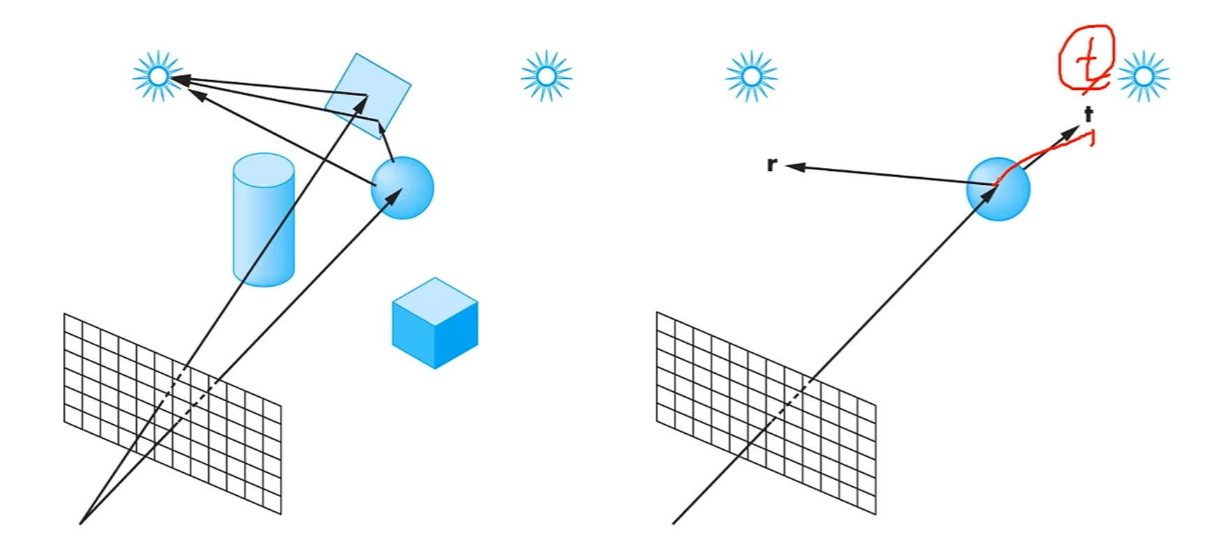 각 object에 대해 반사되는 빛과 굴절되는 빛이 있겠죠?