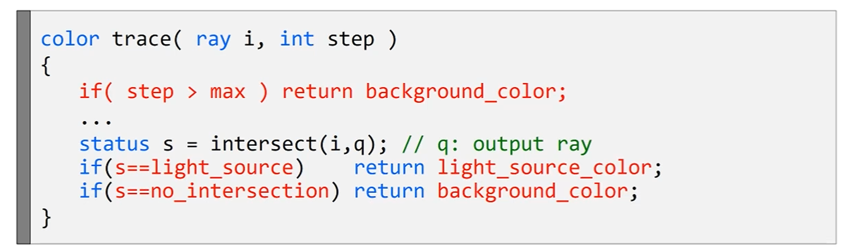 만약 반사되고 어쩌고 한 ray가 light source에 도달하지 못하고, 영원히 튕기고 튕기고 한다면 그거까지 다 계산할 수는 없으니,