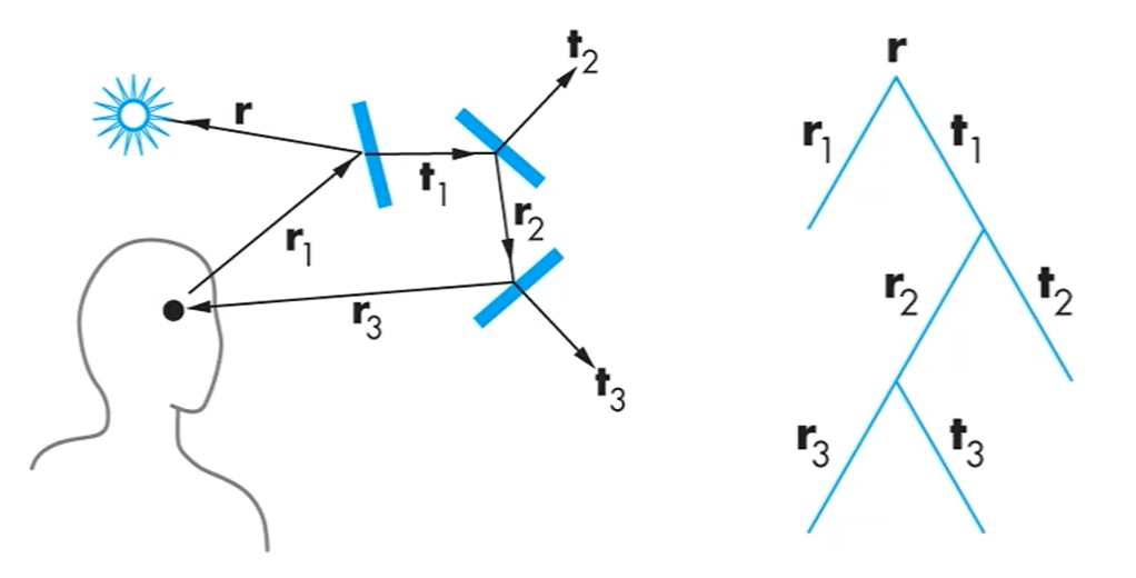 그리고 각 반사광과 굴절광이 다른 object에 붙으며 또 반사되고 굴절될 수 있겠죠?