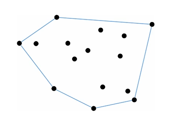 이 모든 point를 다 포함하는 가장 작은 convex object를 convex hull이라고 하구요.
