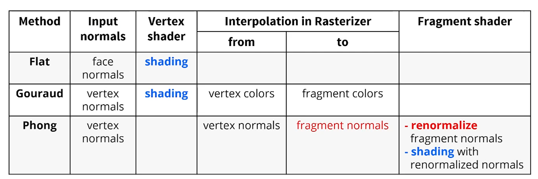 Raster에서 'color'를 interpolate하면 Gouraud Shading,