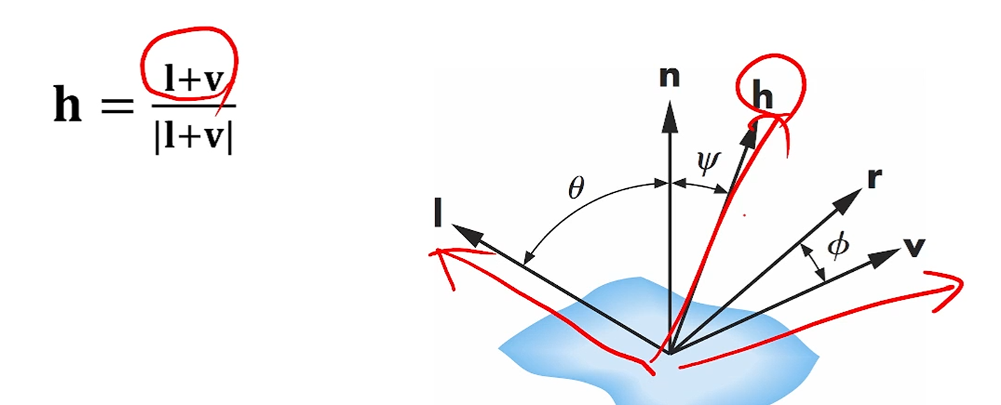 l과 v 사이의 halfway-vector인 h를 소개해서,