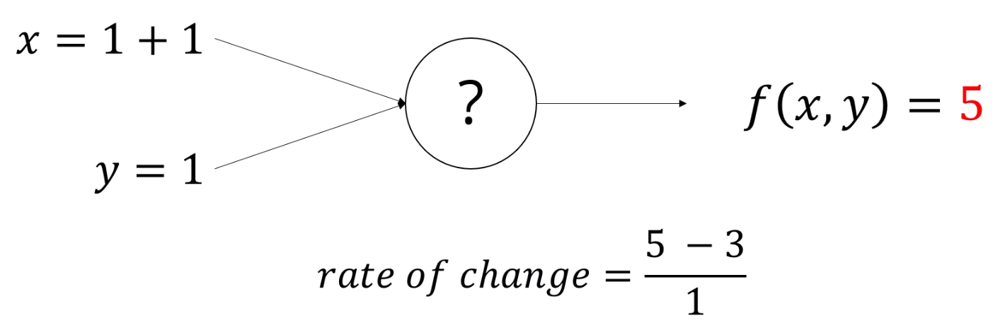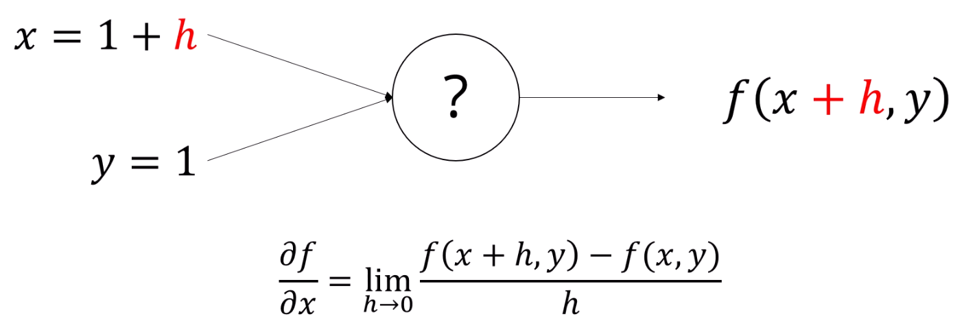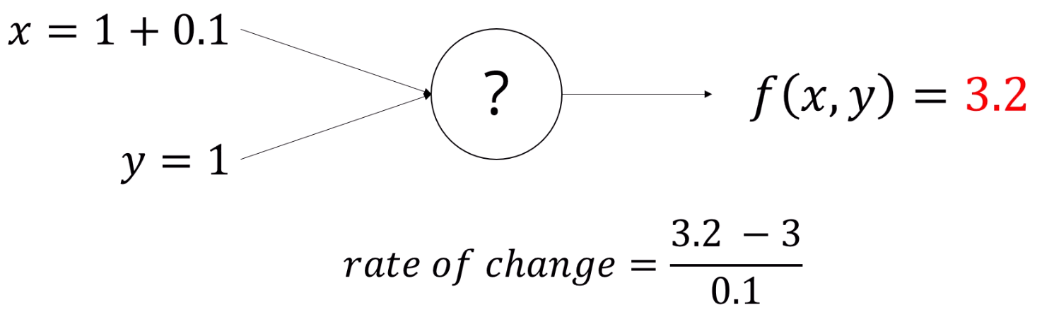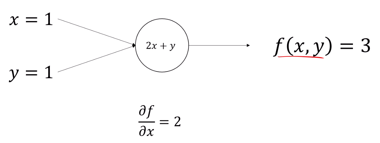 f(x,y)의 식을 알고 있다면, x의 gradient를 알 수 있습니다.