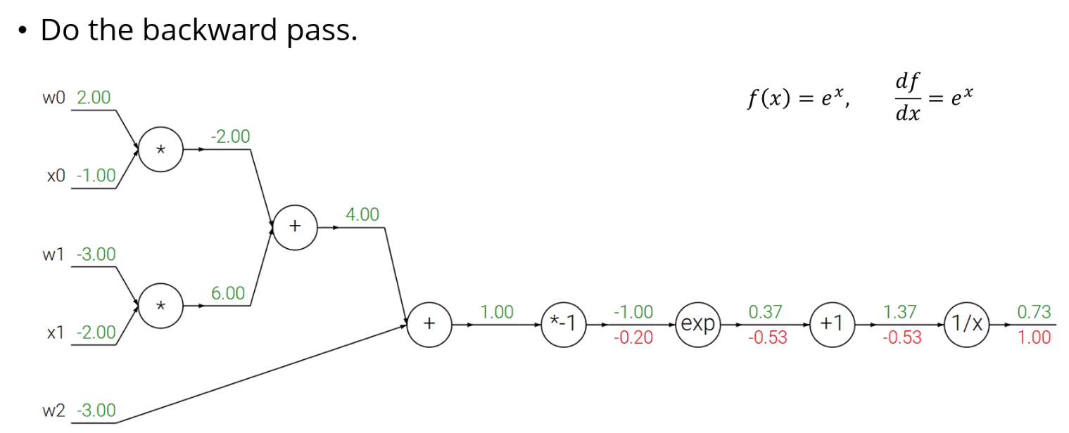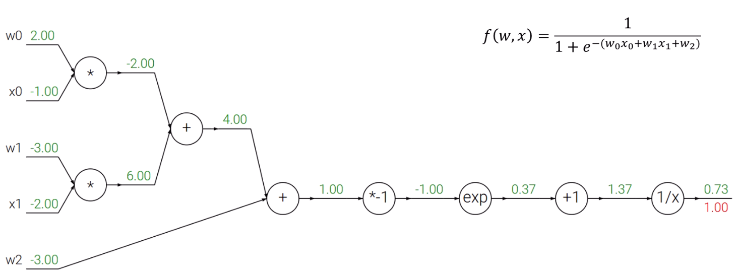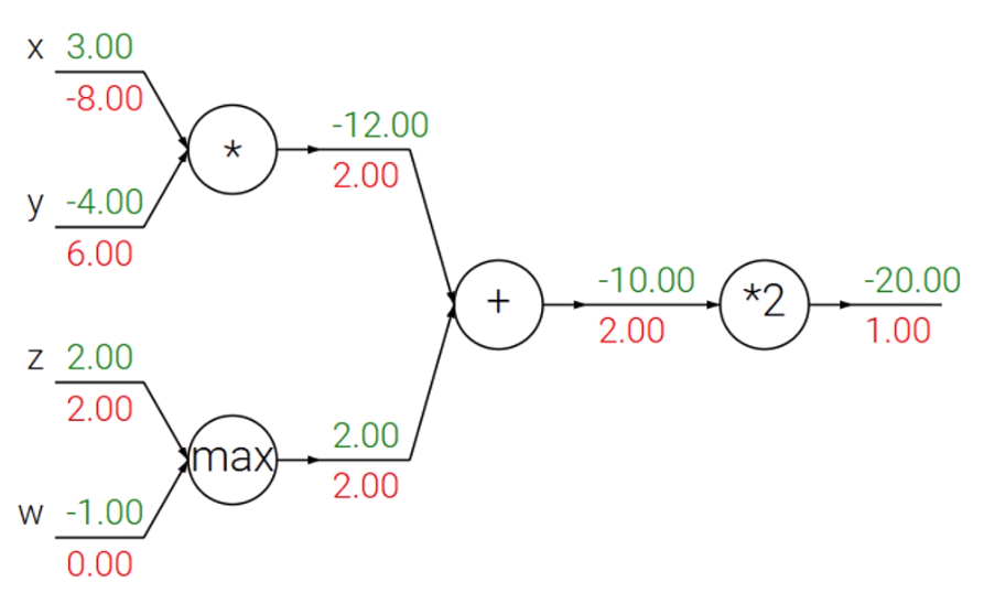 빨간 값을 gradient이고, 초록 값이 forward pass된 출력치입니다.
