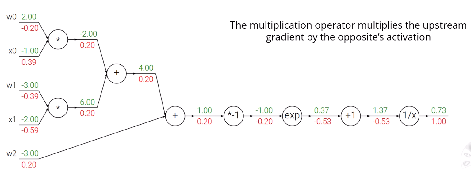 그 upstream gradient에 x 입장에선 y가, y 입장에선 x가 곱해지겠네요.