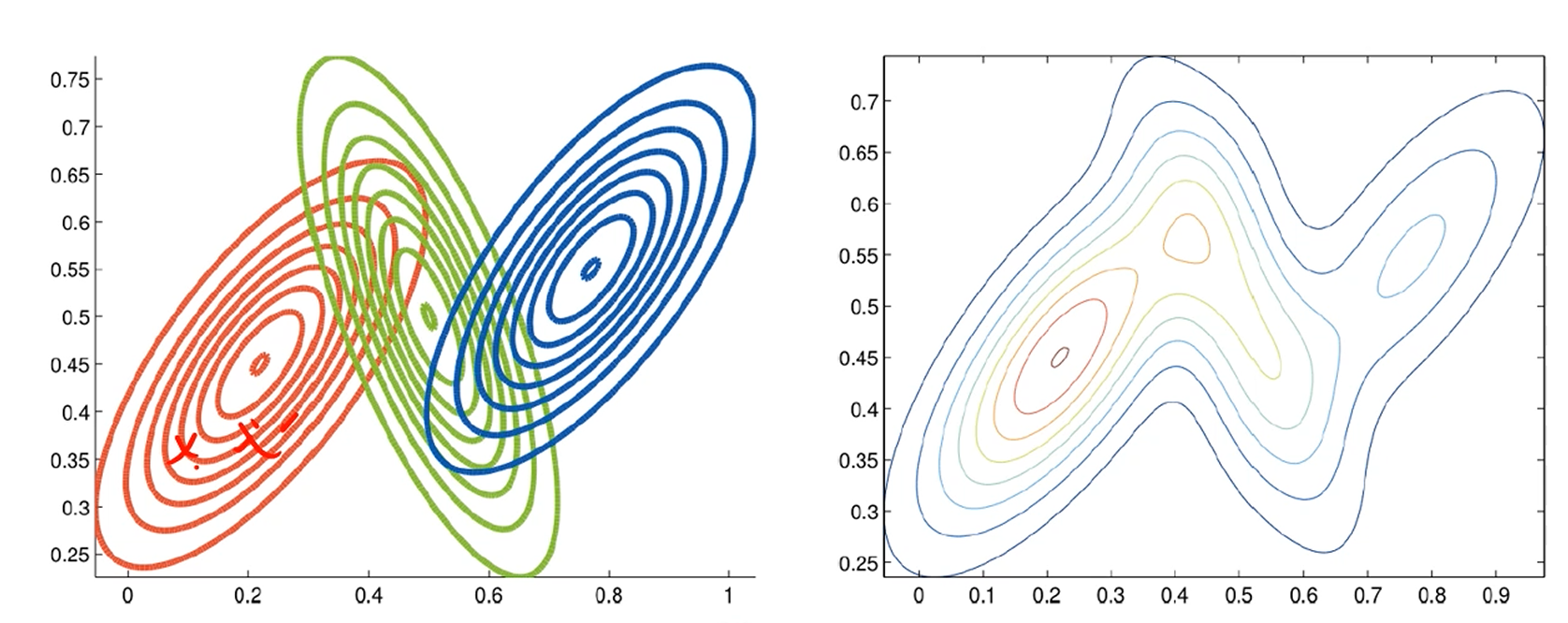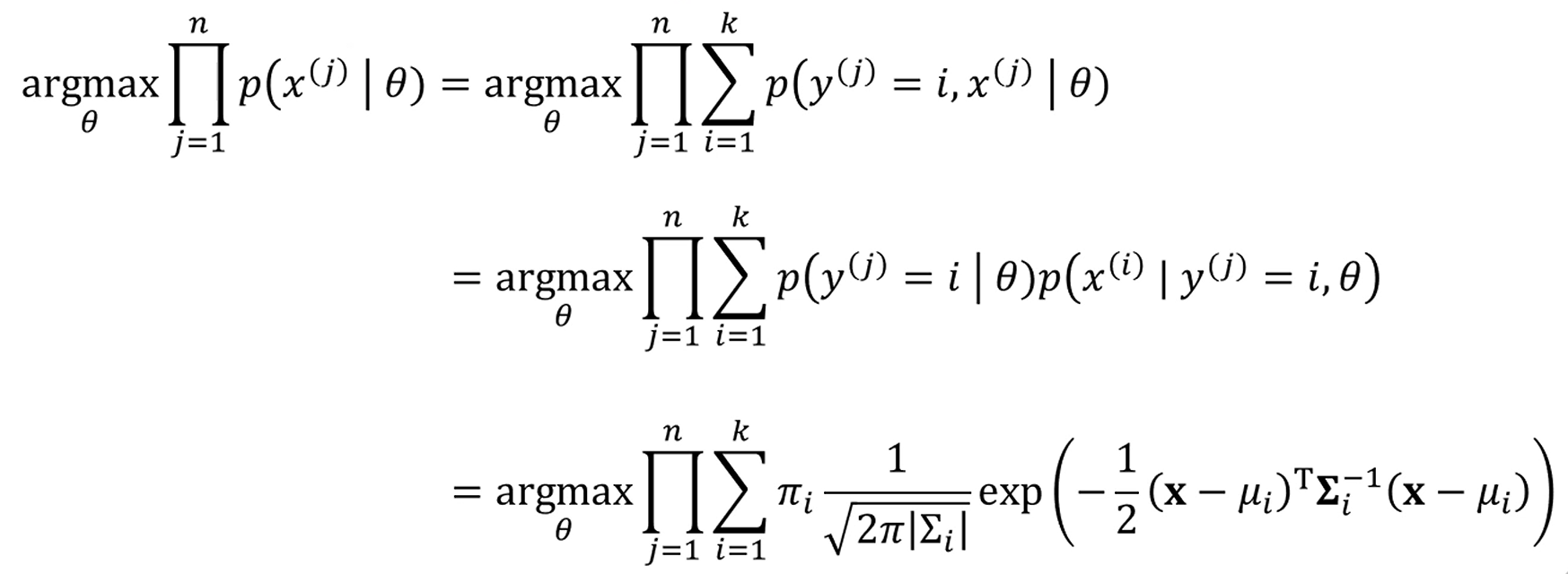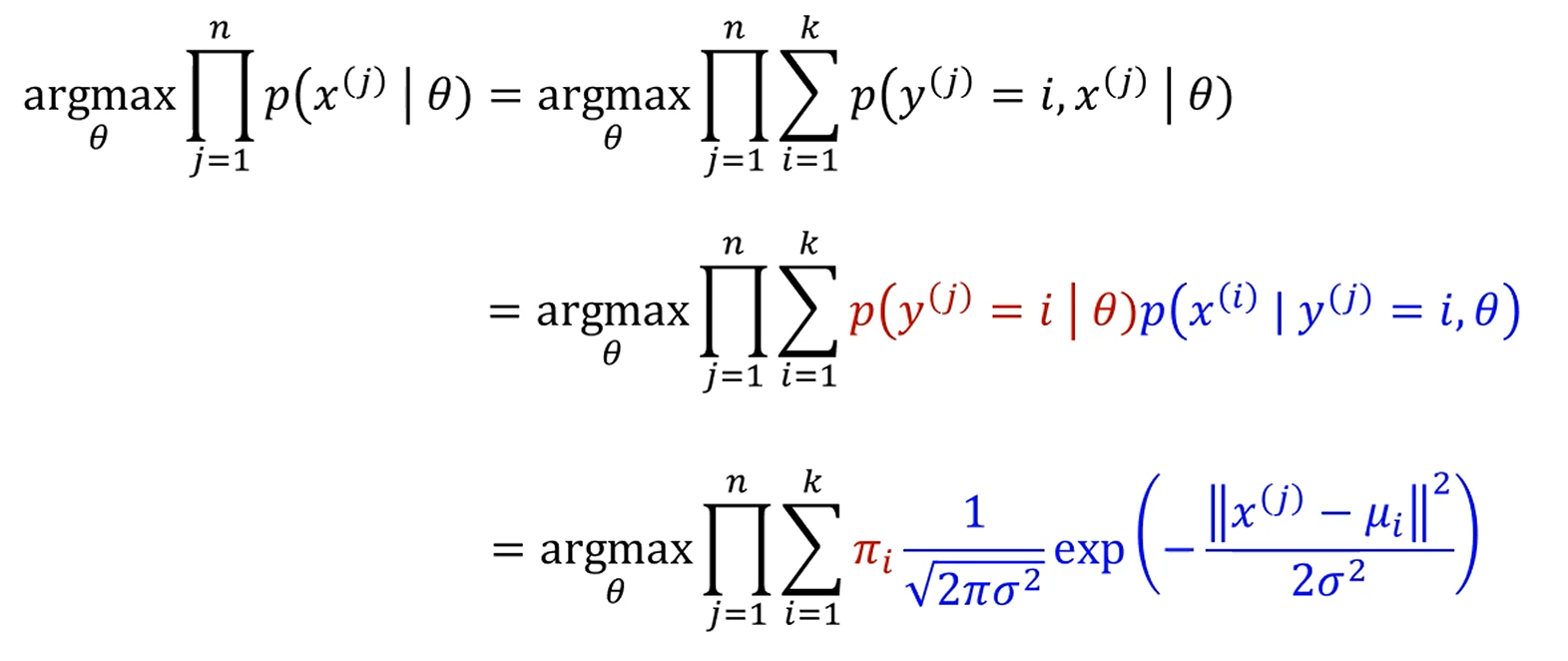 각각의 점들이 어느 Gaussian 분포에서 왔을지도 알아야 합니다.