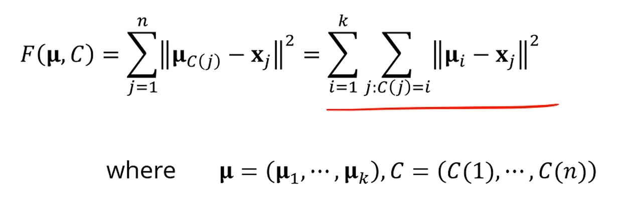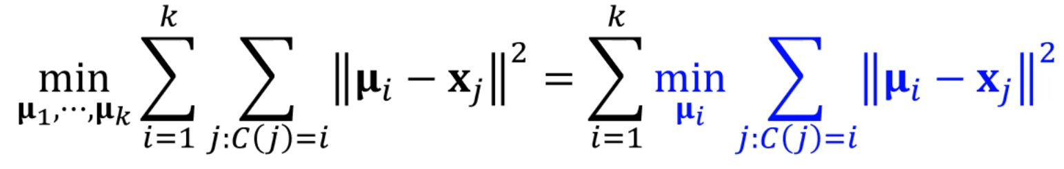 와 cluster의 centroid 사이의 거리의 제곱 합을 최소화하는 를 찾는 문제가 됐네요?