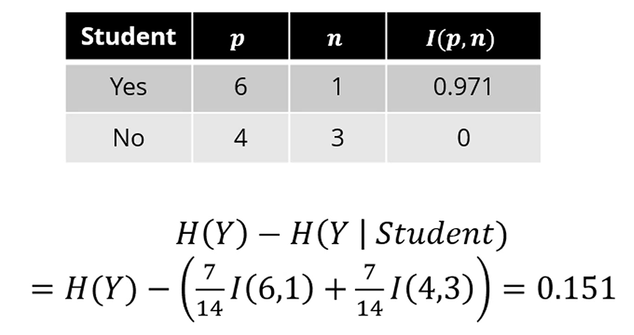 학생여부를 기준으로 두면 IG는 0.151이 나옵니다.