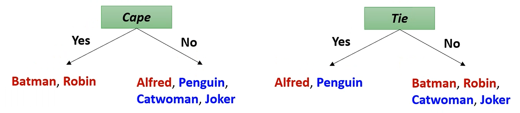 그러면 이제 이 데이터셋에서 Cape, Tie 중 어느게 더 이상적인 Split인지 알 수 있습니다.