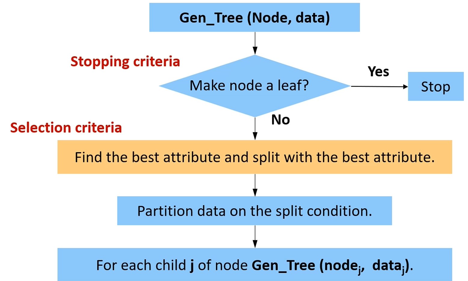 IG를 이용해 best attribute를 찾고, 데이터를 attribute를 이용해 쪼갠 후,