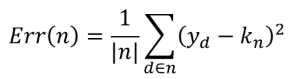 Regression Tree에선 각 node의 출력을 다음과 같이 정의합니다.
