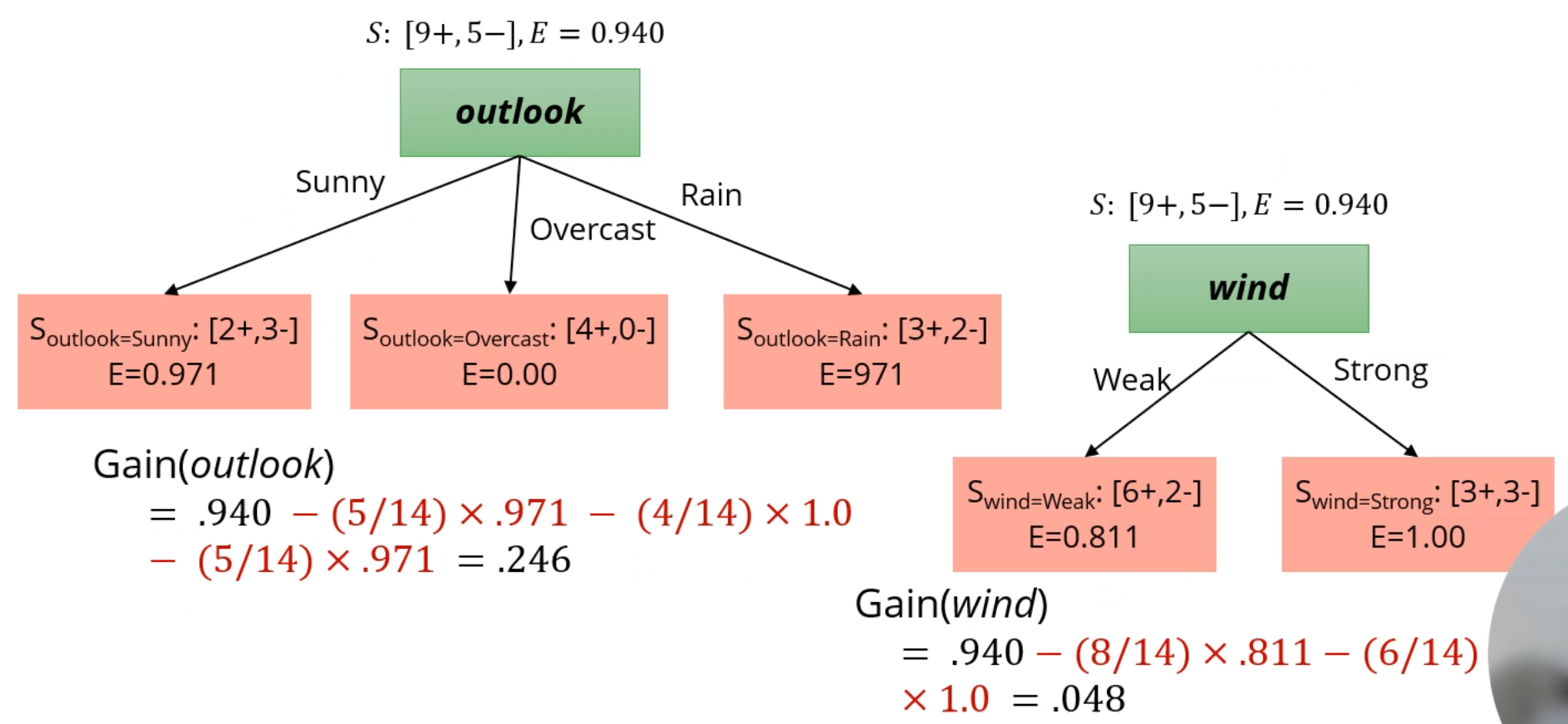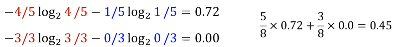 또, CART에선 attribute가 특정 값일 때의 gain을 계산합니다.