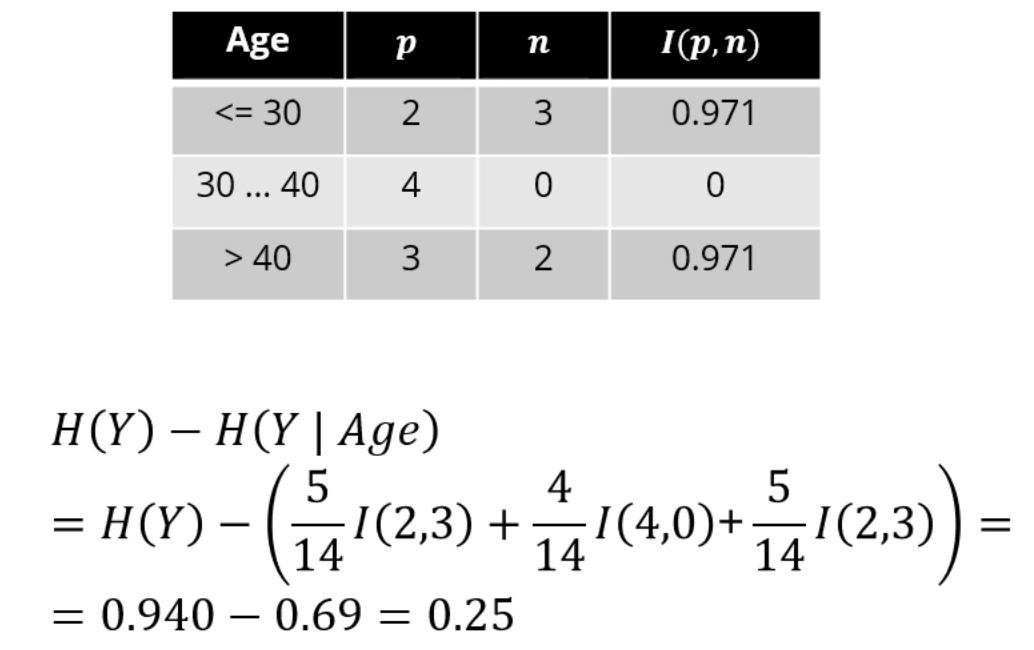 Age를 기준으로 분류하려 한다면, IG는 0.25가 됩니다.