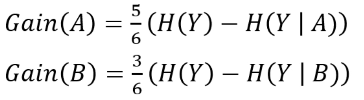 나눠진 sample들의 개수까지 고려를 하니 B보다 A가 더 좋은 attribute로 보이게 되는거죠.