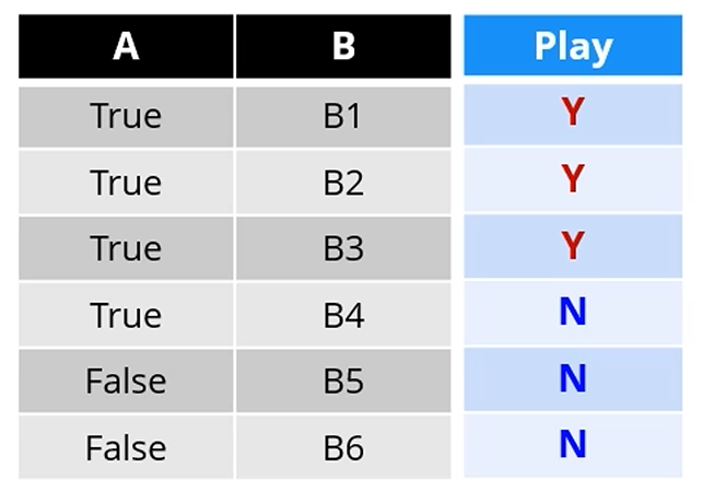 A가 기준이면 5개 중 3개가 True, 2개가 False고,
