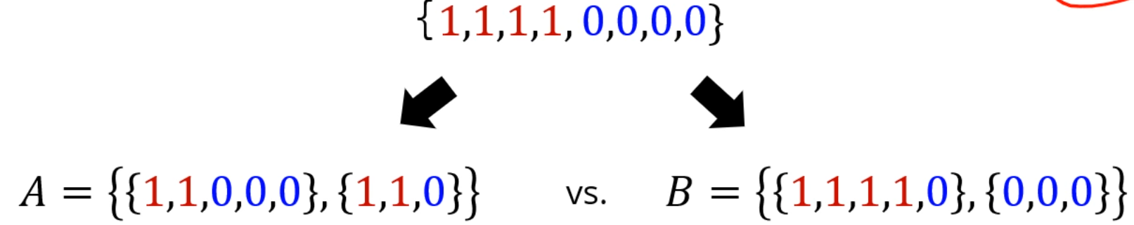 앞선 데이터셋을 A로 쪼개면 4개 / 2개로 쪼개집니다.