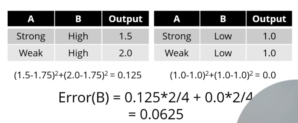 결국 A로 쪼갰을 때의 Error는 0.125 * 2/4 + 0.5 * 2/4 = 0.3125가 됩니다.
