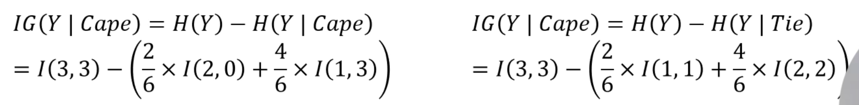 Information Gain을 이용해보면, Cape를 택한 쪽 IG가 제일 높습니다.