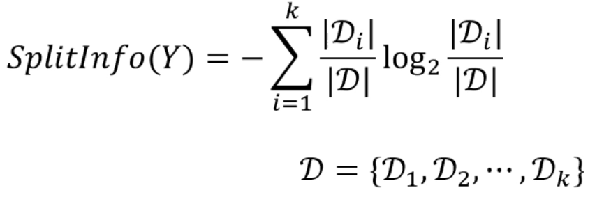 위의 SplitInfo 식은 Entropy 식과 매우 유사하게 생겼습니다.