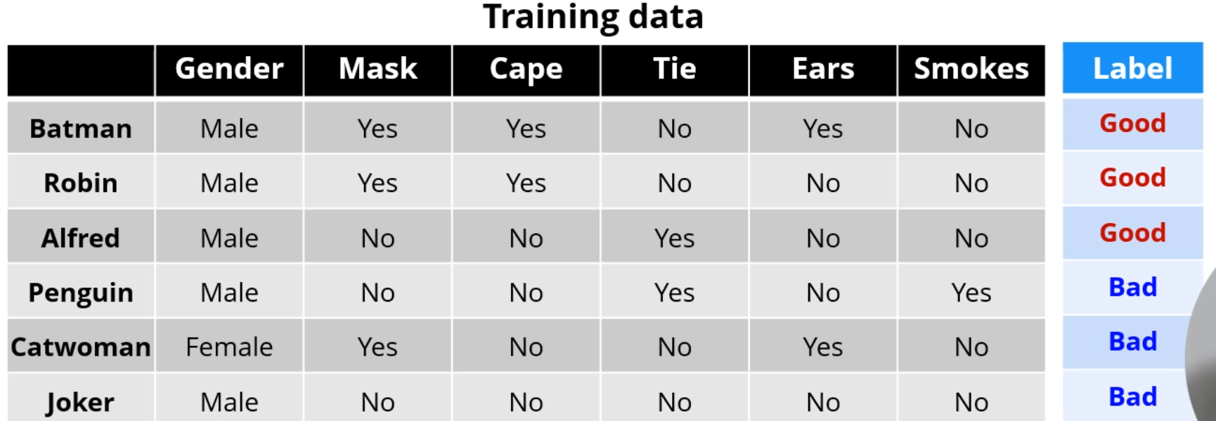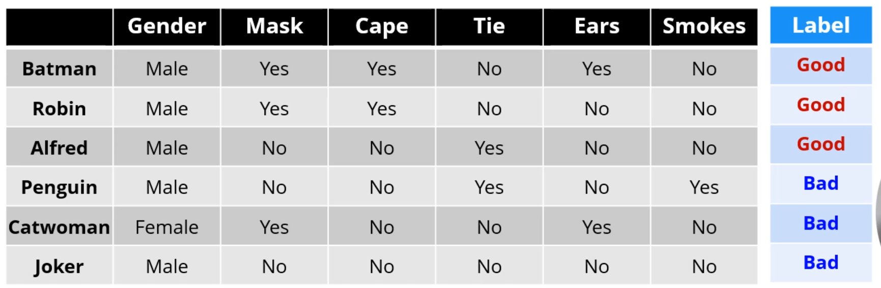 다음과 같은 영웅 Data Set을 이용해 Decision Tree를 구성합니다.