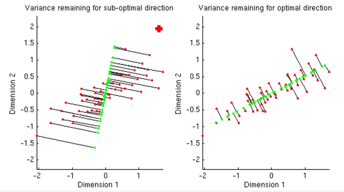 그러면, 오른쪽이 더 좋은 PCA 1차원이 됩니다.