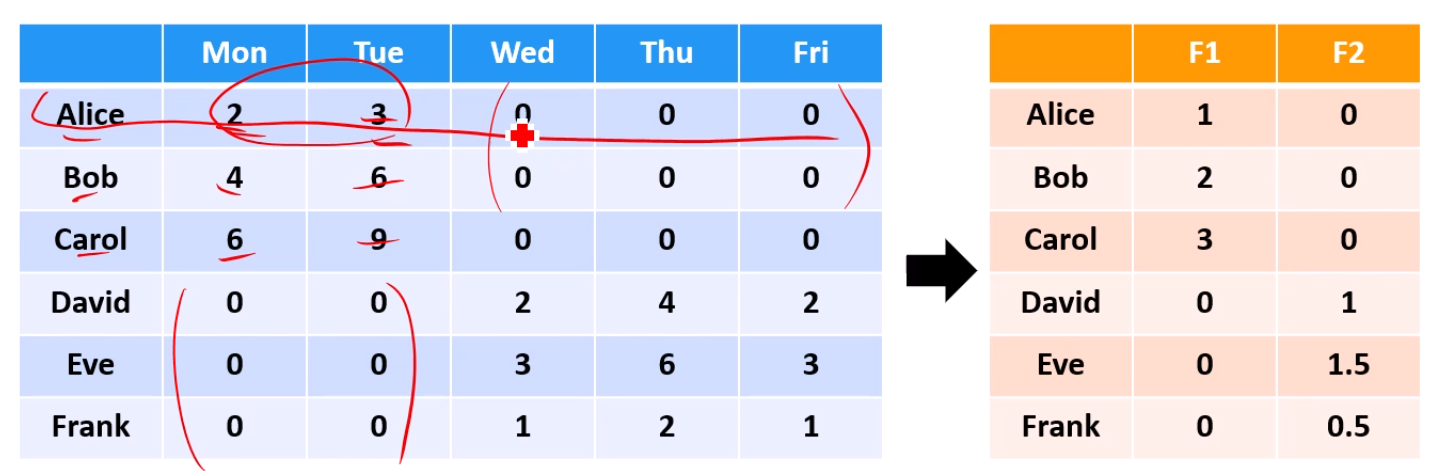 근데 우리가 2차원 데이터를 바탕으로 feature vector를 2개를 구했으니,
