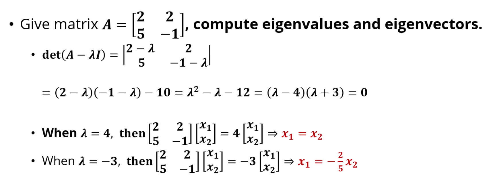 에 대해 determinent를 구하면 eigenvalue가 나옵니다.