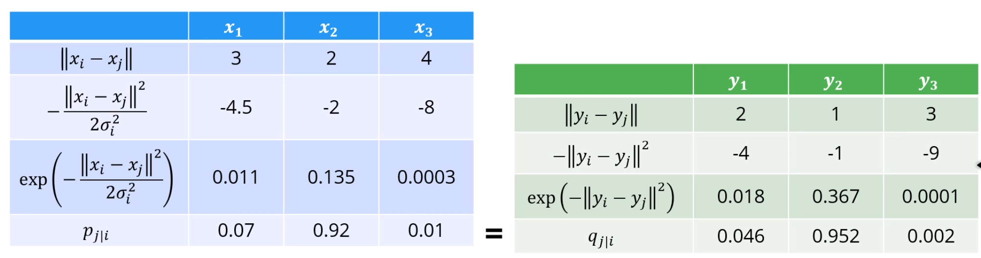 저차원상에서의 거리도, euclidian을 그대로 쓰지 않고 exp를 씌워 가까운 애들에게 이점을 줍니다.