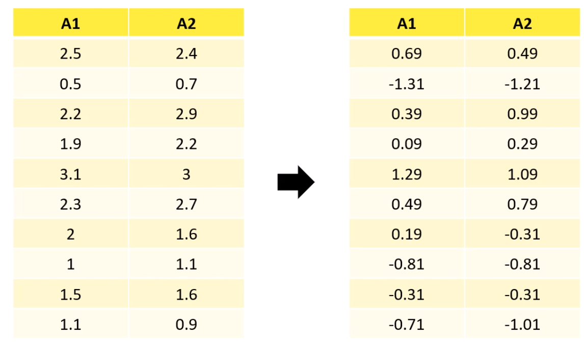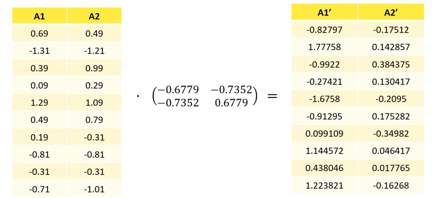 그래서 기존의 data에 eigenvector를 곱해서 새 축으로 삼는거죠.
