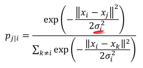 t-SNE에서는 해당 를 데이터의 분포도에 따라 adaptive하게 정합니다.