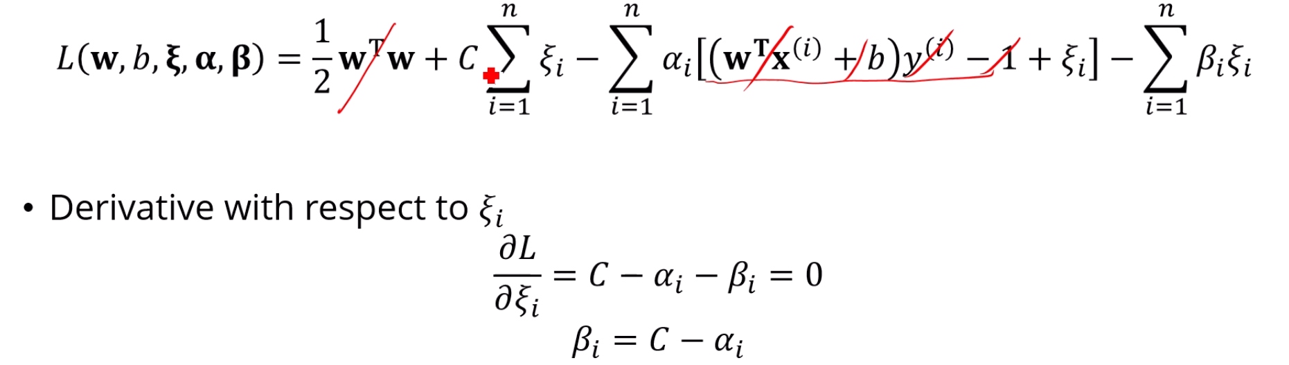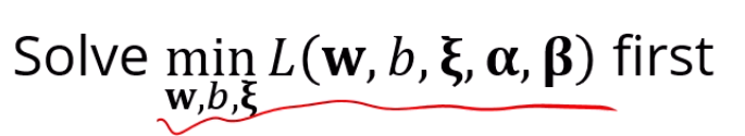 라그랑지안을 w, b, 에 대해 잘 미분을 하면,