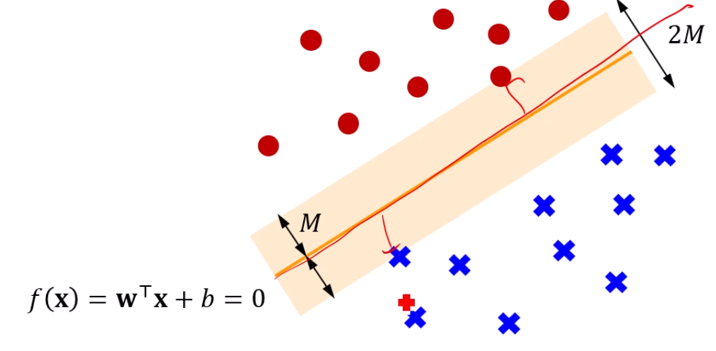 우리는 그 x들과 초평면의 거리가 최소 M은 되기를 바랍니다.