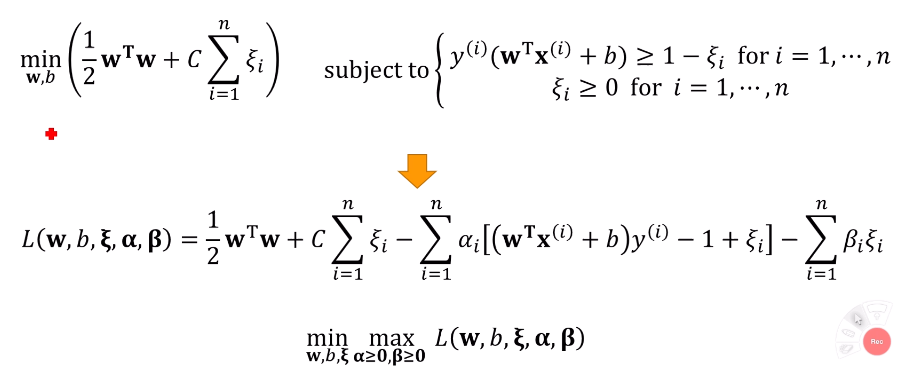 정리를 하면, 기존의 Hard Margin SVM 문제에서,