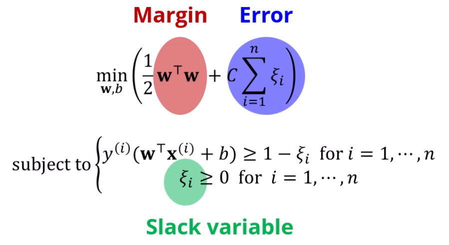 저 C는 margin과 Error 사이에 뭘 더 중점으로 둘지 정하는 상수입니다.
