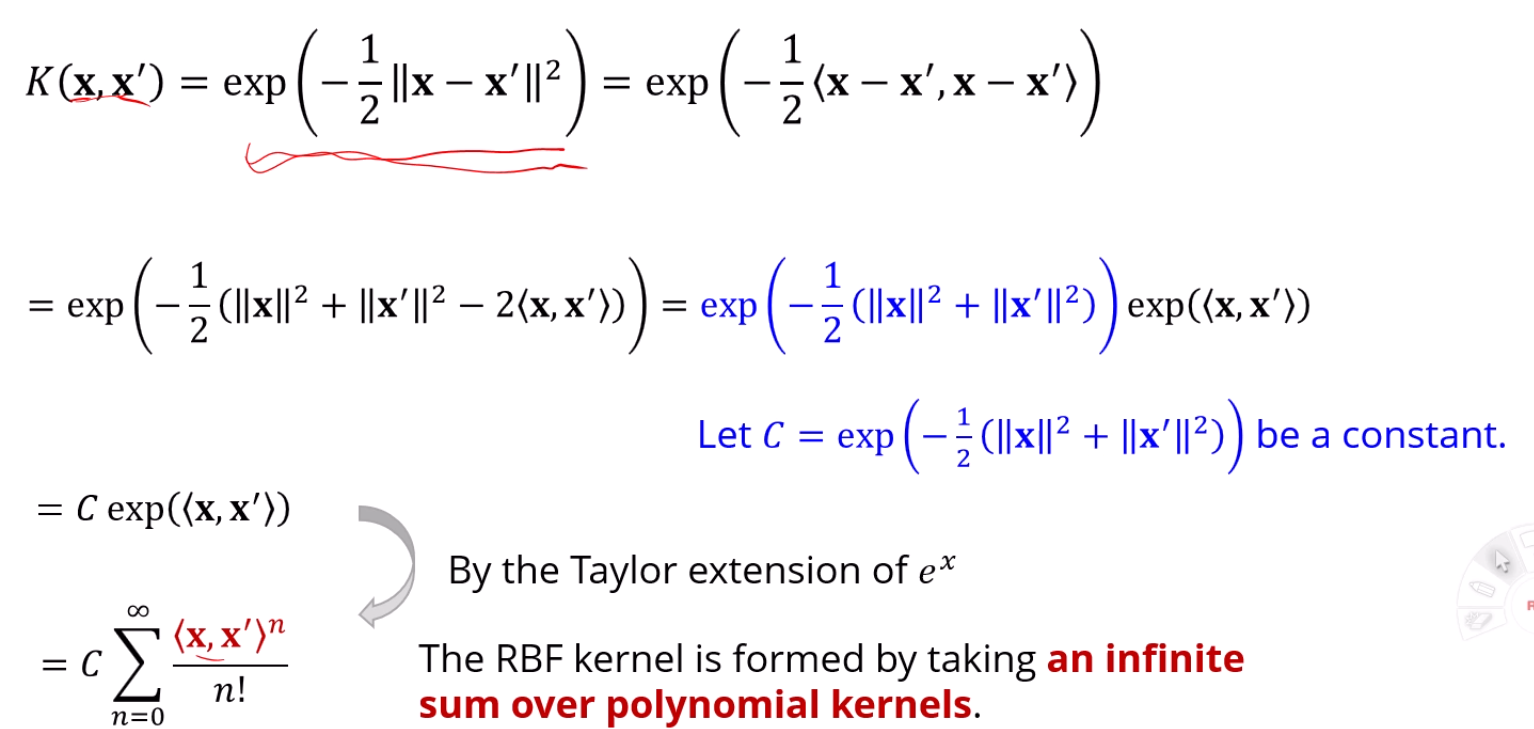 RBF의 장점은, 무한개의 Kernel함수를 합친것처럼 표현이 가능하다는 점입니다.