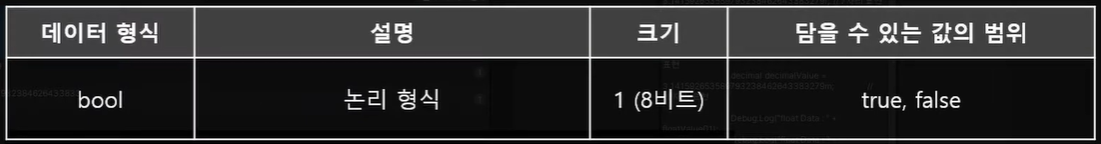 bool 형식은 참(true:1)과 거짓(false:0)만 표현하기 때문에 1비트만으로 표현이 가능하지만, 컴퓨터가 다루는 기본 데이터 크기가 바이트 단위이기 때문에 1비트만 저장하려 해도 한 바이트를 통째로 사용