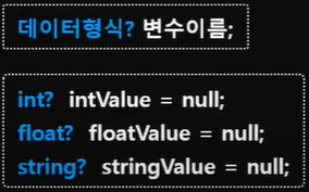 0이 아닌 비어있는 변수, null 상태를 가질 수 있는 변수