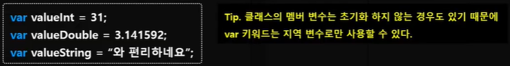 컴파일러가 변수의 형식을 판단 할 수 있도록 선언과 동시에 초기화