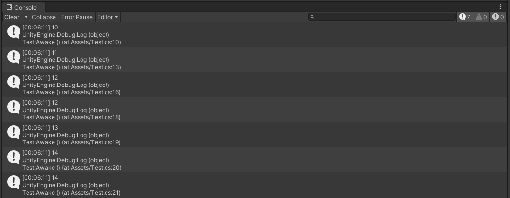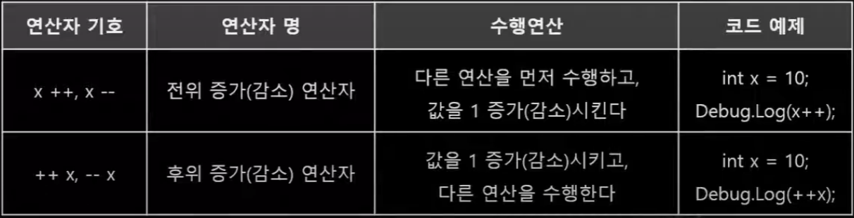 Debug.Log(++a); // a 값 증가 후 Debug.Log() 실행