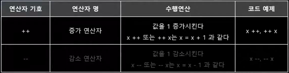 a++; // 후위 증가 연산자