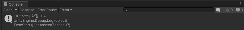 Debug.Log("학점 : B+");