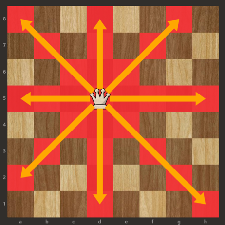 퀸은 내 위치를 포함한 주변 8칸, 직선거리, 대각선 거리를 모두 움직일 수 있다.