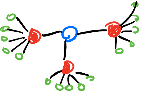 이정도 그래프는 우리가 쉽게 파란색이 중심이라 생각하겠지만 연결중심성은 빨간색이 중심이라고 말한다.